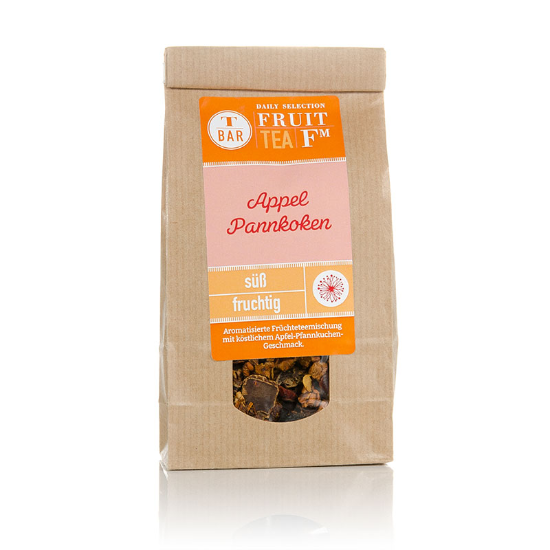 Die aromatisierte Früchteteemischung Appel Pannkoken von T bar lässt dich von von Apfel-Pfannkuchen träumen! Der fruchtig süße Geschmack wird dich überzeugen!