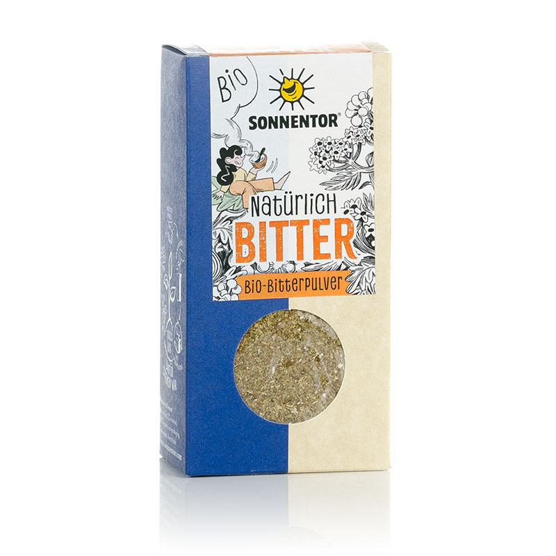 Das Bio Natürlich Bitter-Basenpulver gemahlen von Sonnentor ist eine Bio Gewürzmischung bestehend aus Bitterkräutern für den Säure-Basen-Haushalt.