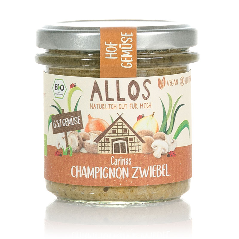 Der Bio Carinas Champignon-Zwiebel von Allos ist vegan, lactosefrei und glutenfrei. Aus 70% Gemüse mit mehr Geschmack.