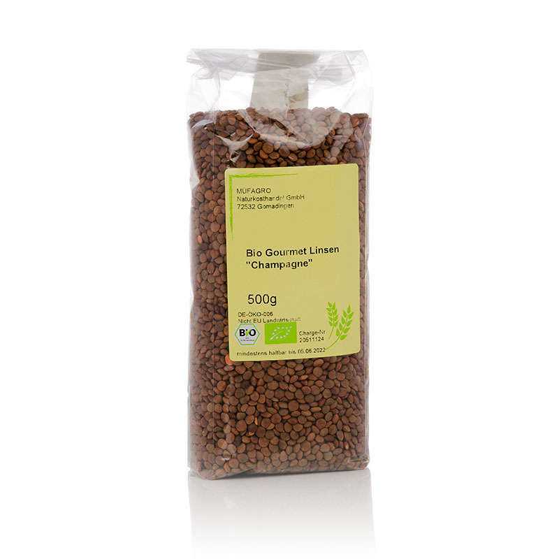 Sehr schmackhafte braune Bio Champagne Linsen von Müfagro, werden auch Château-Linsen genannt.