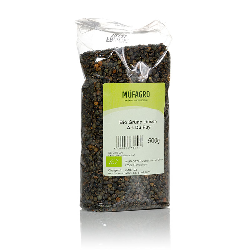 Bio Grüne Linsen Art Du Puy von Müfagro – markant, nussig und bissfest im Kern. Das kulinarische Highlight französischer Landwirtschaft.