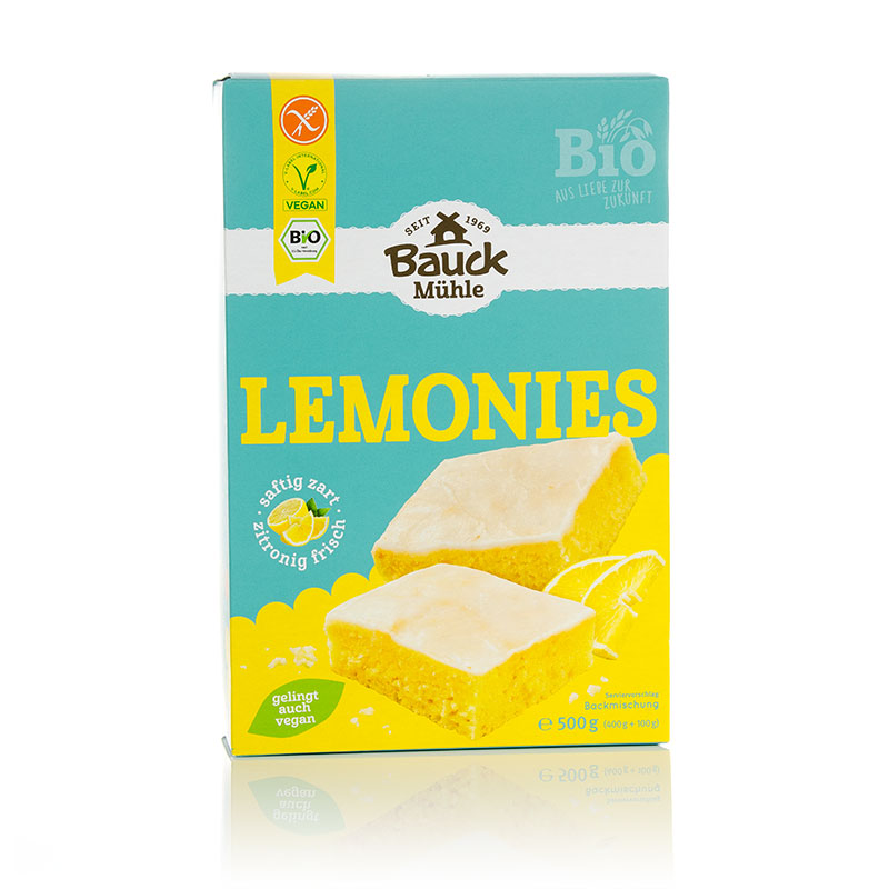 Die Bio Lemonies Backmischung von Bauck ist eine glutenfreie Backmischung für Lemonies, die sowohl vegetarisch oder auch vegan hergestellt werden können.