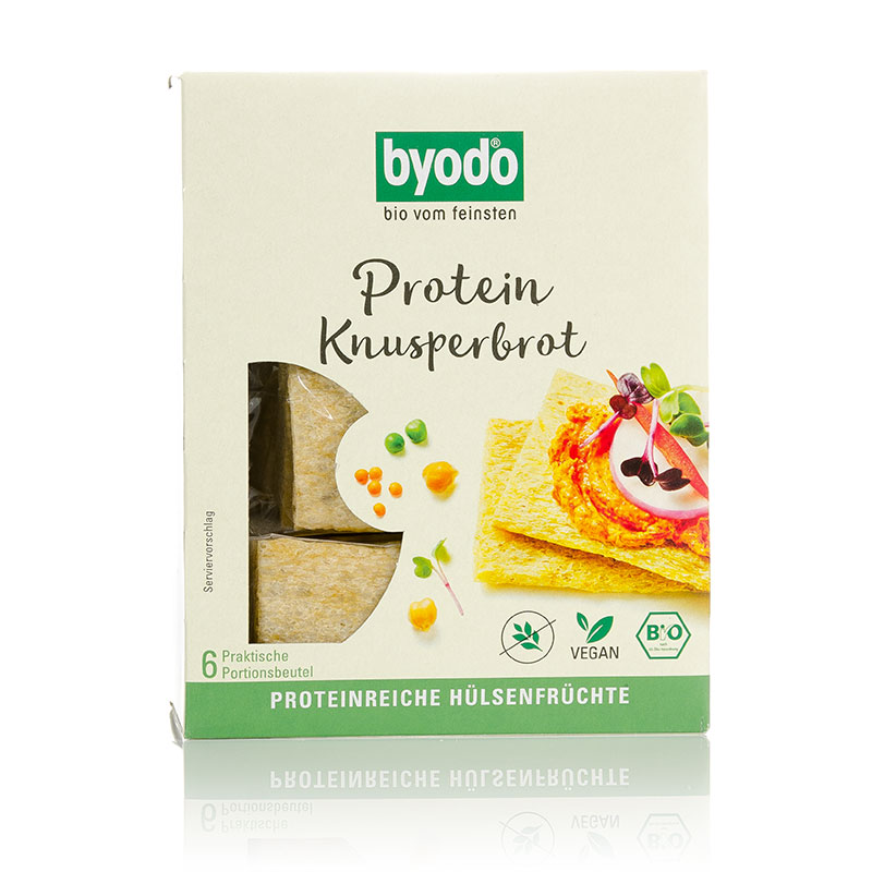 Das Bio Protein Knusperbrot von Byodo überzeugt mit seiner extra lockeren und besonders knusprigen Textur. Der ideale Snack aus proteinreichen Hülsenfrüchten.