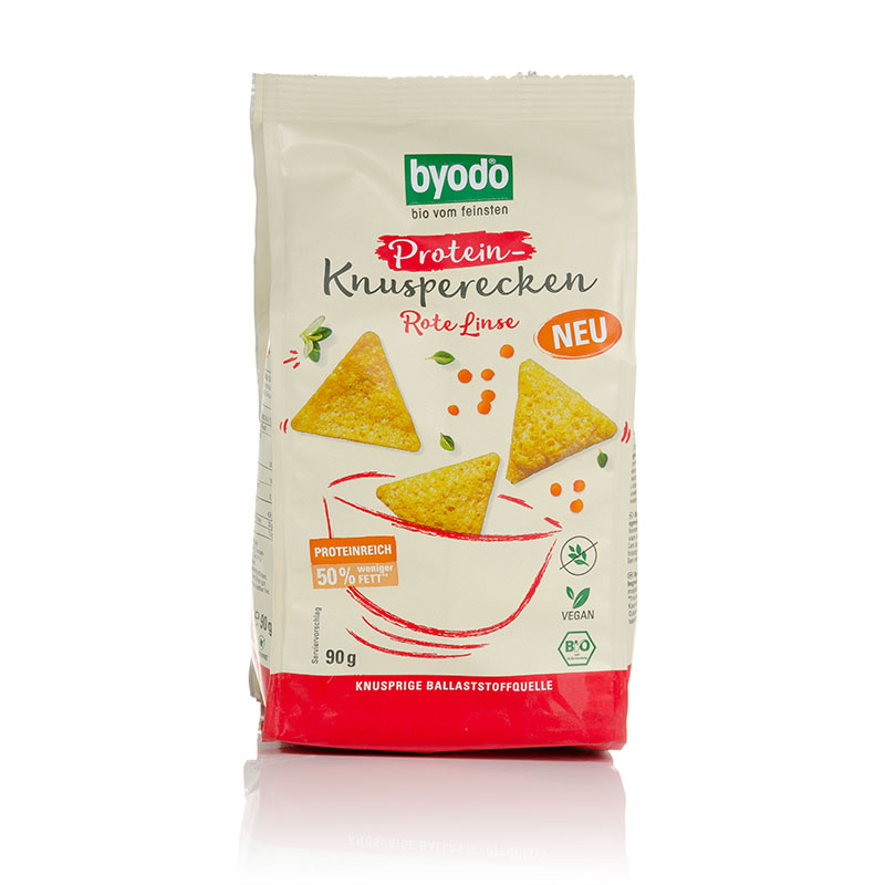 Die Bio Protein-Knusperecken Rote Linsen von Byodo sind aus feinstem Linsenmehl hergestellt. Liebevoll gepufft werden die Knusperecken nicht frittiert und enthalten so 50% weniger Fett. Der ideale Snack mit Power!