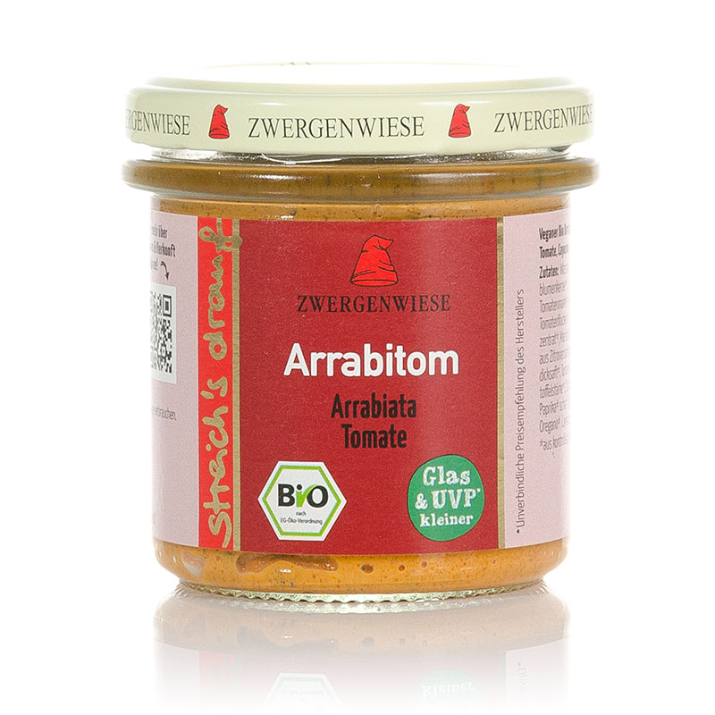 Der Bio Streich s drauf Arabitom von Zwergenwiese ist ein veganer und würziger Brotaufstrich mit Tomaten und Cayenne. Dieser ist bereits verzehrfertig und muss nur noch den Weg auf dein Brot finden!