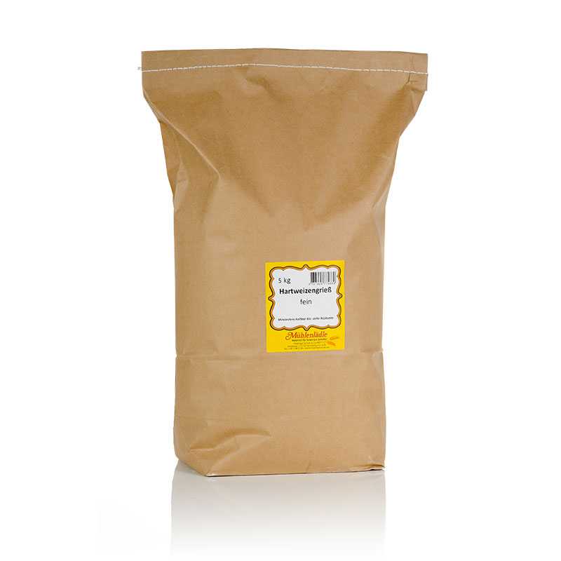 Hartweizengrieß kaufen, feiner Grieß, der etwas gröber als Mehl ist und daher ideal zur Herstellung von Nudeln, Pasta, Spätzle sowie für Grießklöße, Grießschnitten, Klöße und Grießnockerln, als Suppeneinlage und für alle Teige, die fest werden sollen.