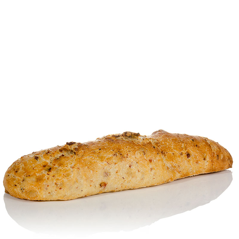 Weizenmehl, Dinkelmehl, Wasser, Speckwürfel, Salz, Backmalz, Hefe